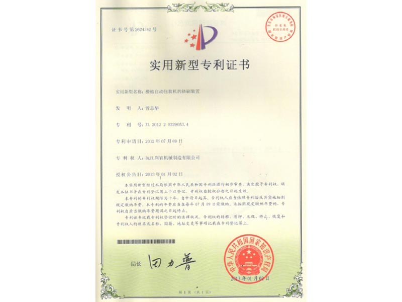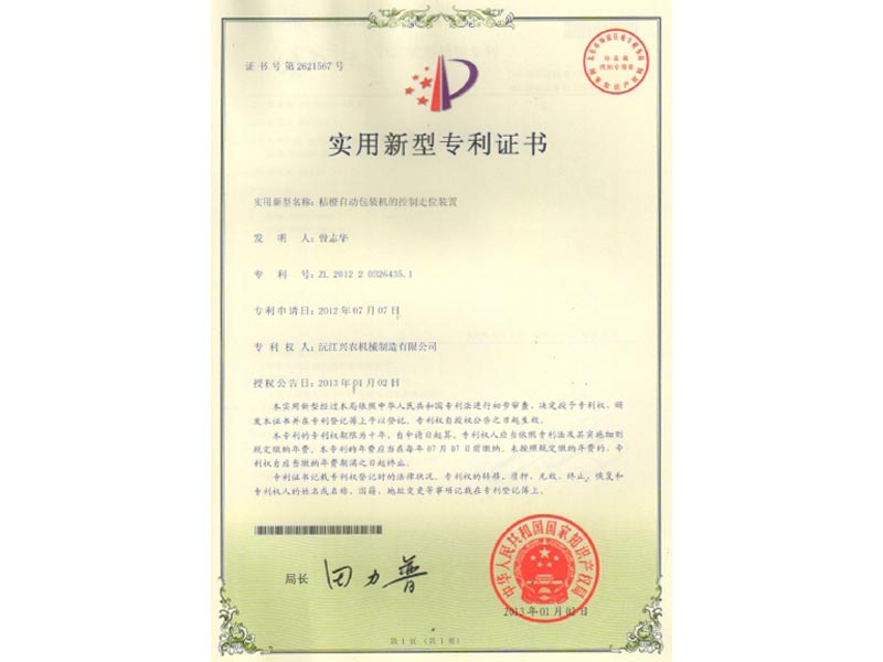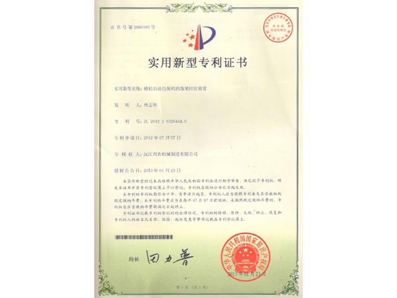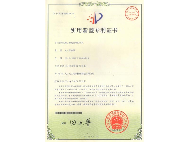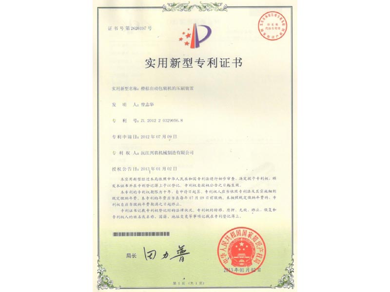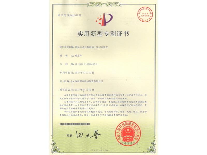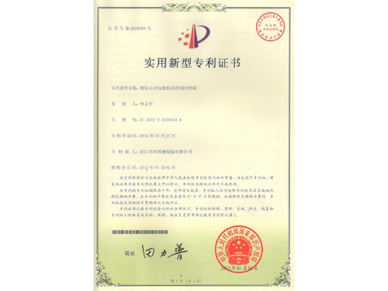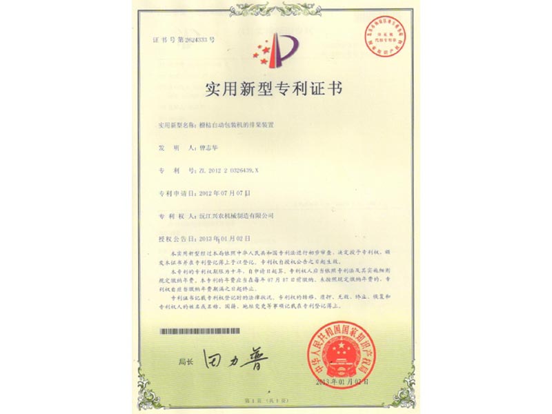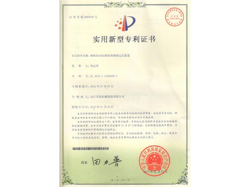 實用新型專利證書